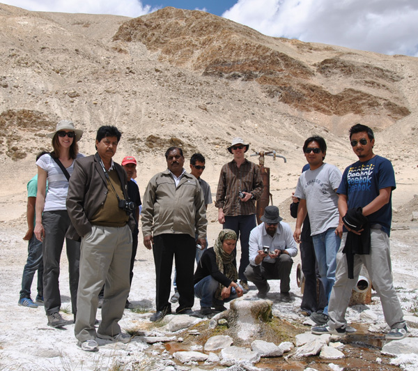 As part of the workshop in Leh the scientists visited the Puga and Chumathang geothermal fields, which allowed the Australian researchers to gain first hand experience of active geothermal systems, as well as learning more about this significant part of Himalayan geology. The Puga hot springs area has attracted recent interest as a possible site for commercial electricity generation after around 30 years of intermittent study and development.