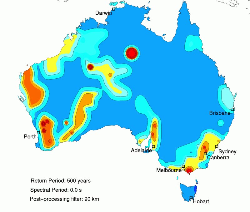 A series of maps depicting areas of Australia which are more or less susceptible to earthquakes will provide important information to help planners mitigate the possible impacts of future earthquakes.