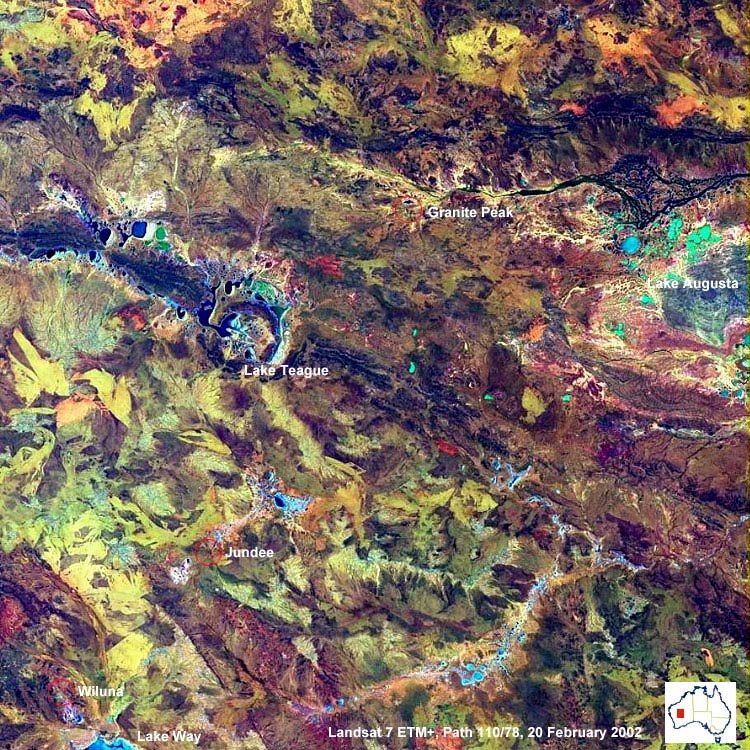 This Landsat image features Shoemaker Crater, Lake Teague, Western Australia.
