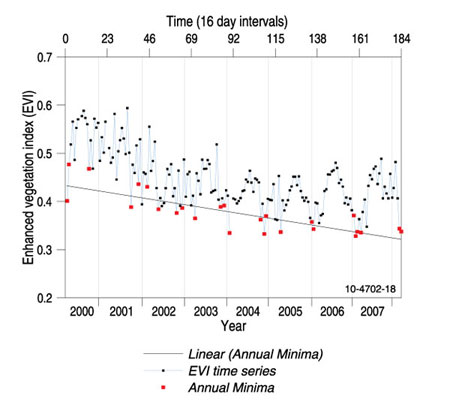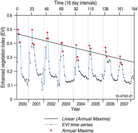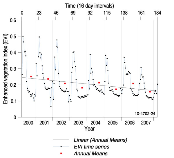 Interpreting the trend in annual Enhanced Vegetation Index (EVI) values