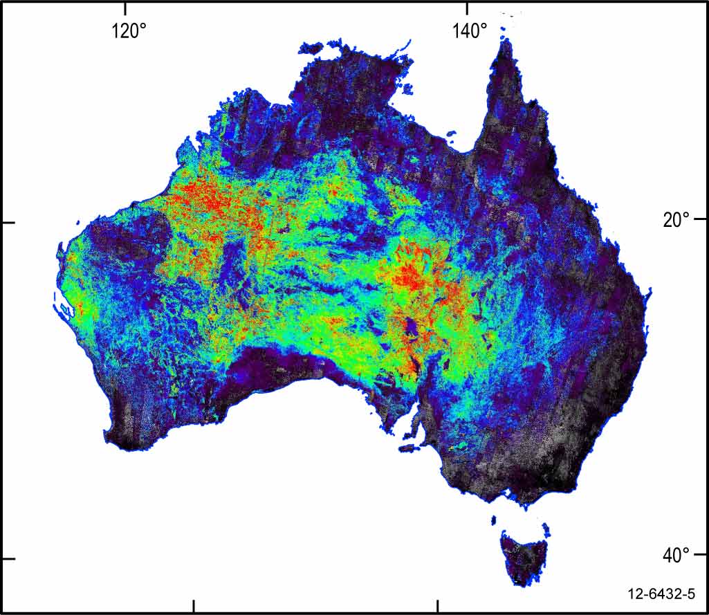 ASTER is the first geoscience-tuned Earth observation system that has acquired three near-complete coverages of the Earth's land surfaces. These geoscience maps are available as 1:1M map-sheet tiles in GIS format. These have been produced from 3000 ASTER scenes of 60x60km. Each scene was cross-calibrated and validated using independent Hyperion EO-1 satellite imagery.