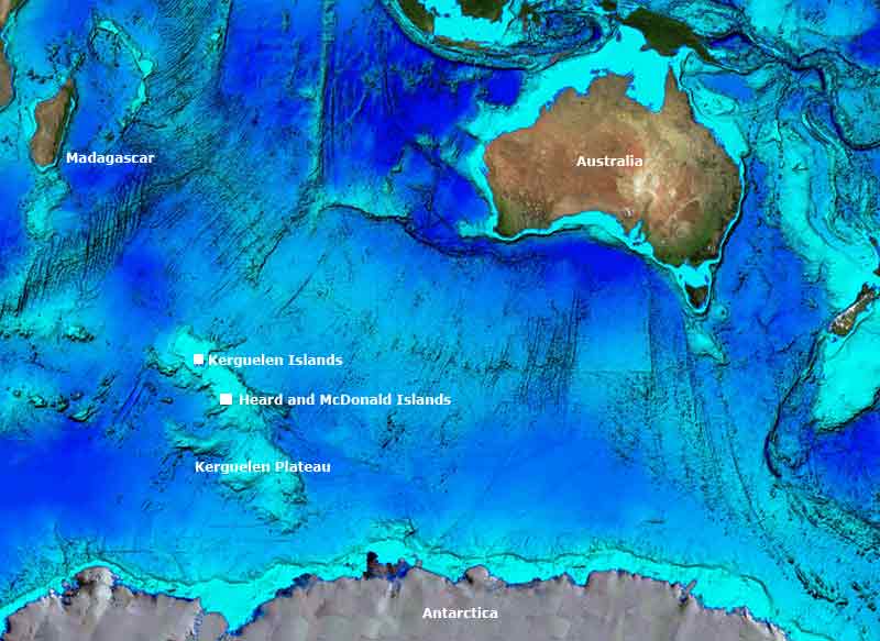 Along with the French Kerguelen group of islands 440 kilometres to the northwest, Heard and McDonald Islands form the only exposed parts of the submarine Kerguelen Plateau.