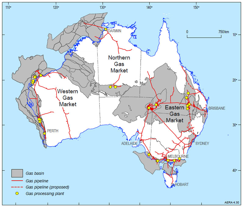 Australia has significant gas resources, with gas being Australia’s third largest energy resource after coal and uranium. Conventional gas resources are widespread both on and offshore, occurring in fourteen different basins, but most of the resource is off the north-west margin in the Bonaparte, Browse and Carnarvon basins.