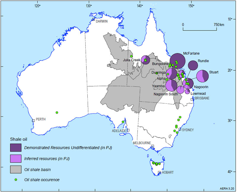 Australia has a large unconventional and currently non-producing identified shale oil resource of 131 600PJ (22 390mmbbl) which could potentially contribute to future oil supply if economic and environmental challenges can be overcome. The majority of Australian shale oil resources of commercial interest are located in Queensland, in the vicinity of Gladstone and Mackay. Thick Cenozoic lacustrine oil shale deposits (lamosite) of commercial interest are predominantly in a series of narrow and deep extensional basins near Gladstone and Mackay. Oil shale deposits of varying quality also occur in New South Wales, Tasmania, and Western Australia in sedimentary sequences of Permian, Cretaceous and Cenozoic age.