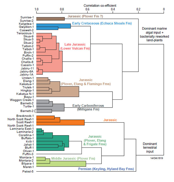 Geochemical data from oils, condensates and gases have been used to characterise the hydrocarbon families in the Bonaparte Basin and to correlate them with likely source rocks. These studies have identified two Palaeozoic and seven Mesozoic oil families in the Bonaparte and Browse basins.