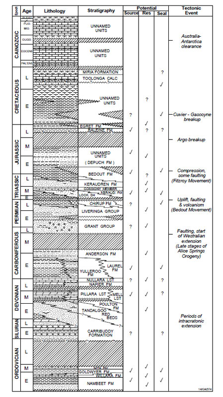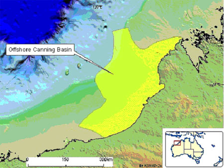 The Canning Basin extends offshore Western Australia to form the Offshore Canning Basin (Oobagooma Sub-basin/Fitzroy Trough, Broome Platform, Willara Sub-basin, Samphire Embayment, Wallal Platform and Wallal Embayment). The offshore portion of the basin contains up to 10km of Ordovician to Tertiary marine and non-marine siliciclastics and marine carbonates.