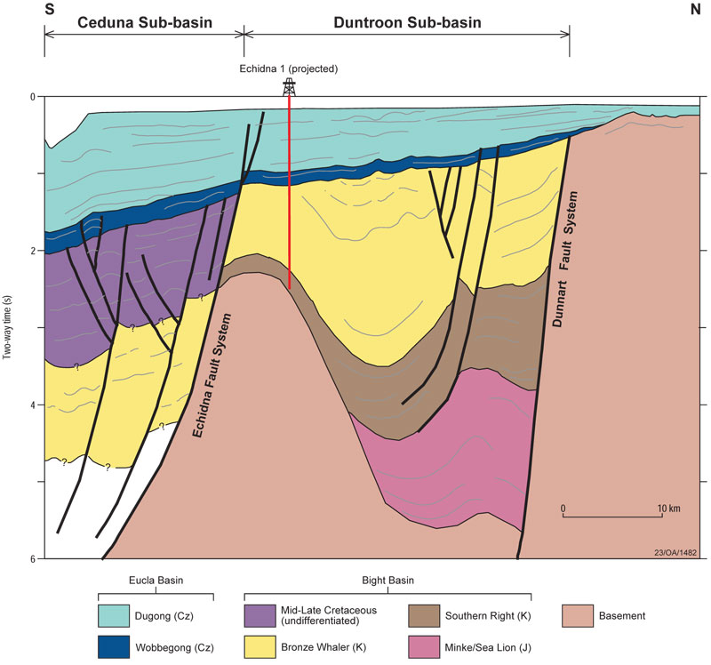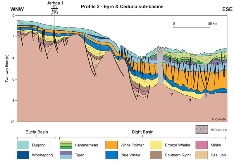 Cross-section of the Eyre and Ceduna Sub-basins © Geoscience Australia.