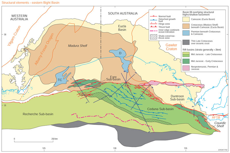 Recherche and Ceduna Sub-basins and Madura Shelf © Geoscience Australia.