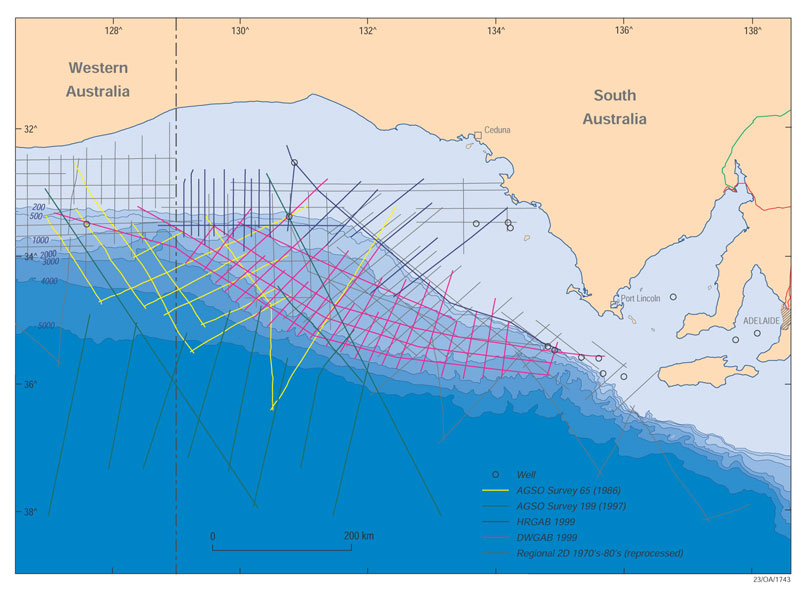 Between 1999 and 2003, Geoscience Australia undertook an integrated geological study of the Bight Basin, which resulted in the development of a new chronostratigraphic framework and an improved understanding of the tectonic and depositional history of the basin.