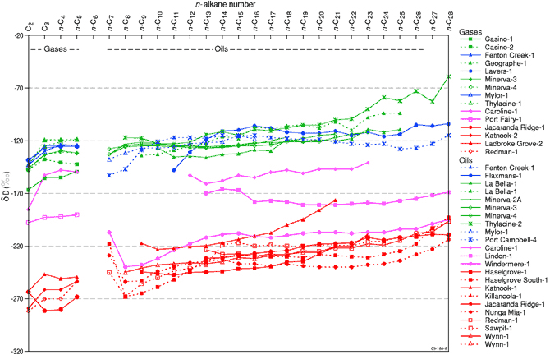 Plot of hydrogen isotopic composition of individual Otway Basin hydrocarbons