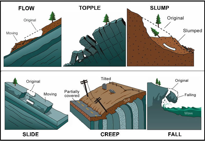 Typically, a number of elements will contribute to a landslide, but often there is one which triggers the movement of material.