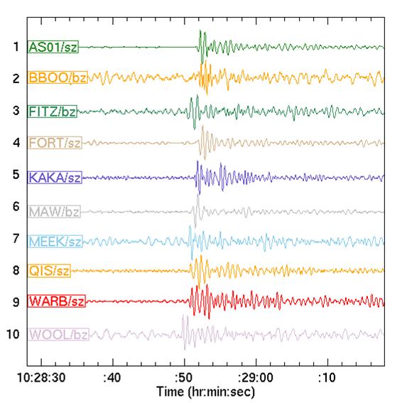 May 28, 1998 Pakistan nuclear explosion recorded on the Australian National Seismograph Network. © Geoscience Australia |
