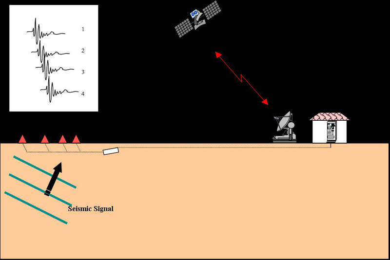 | Schematic of a seismic array recording a seismic signal. © Geoscience Australia |