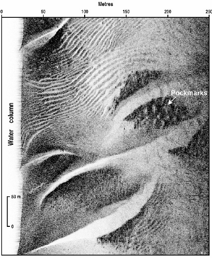subaqueous dunes and pockmarks