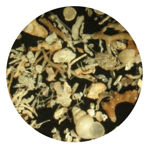 - Calcareous microfossils e.g. foraminifera, ostracods, coccoliths, pteropods