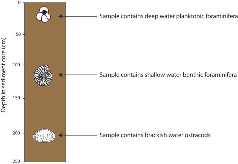 Mapping the occurrence and abundance of microfossil species down sediment cores collected from the ocean reveals changes in environmental conditions through time when combined with knowledge of how animals are related to the different environmental factors.