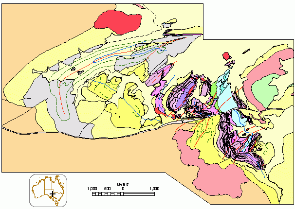- new structural mapping and BHEI seismic reflection profiling has provided evidenced that, contrary to previous expectations, major shear zones in the Broken Hill region dip southeast rather than northwest. Although re-activated during younger events (eg. Delamerian orogeny), most of these structures retain their original geometry and form part of a D3 northwest-vergent fold and thrust belt. This fold and thrust belt was superimposed on an earlier episode of large-scale northeast-vergent recumbent folds (D2), which, in turn, overprint an earlier layer-parallel fabric of possible extensional origin. The recognition of deformational events (D2 and D3) with near orthogonal orientations has major implications for 3D representations of regional structure and stratigraphy in the Broken Hill-Olary region and the ability to predict accurately what occurs at depth. Re-activation of the D3 shear zones during the Delamerian Orogeny and younger events is supported by argon-argon (Ar-Ar) ages ranging from 500-400 Ma.