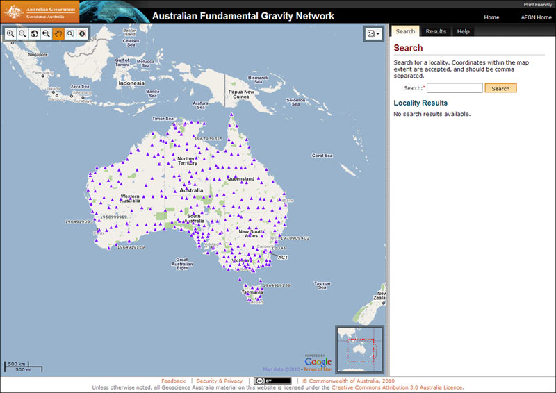 The consistency of the Australian National Gravity Database is controlled by a set of more accurately observed gravity stations called the Australian Fundamental Gravity Network (AFGN). These stations are in about 250 locations throughout Australia and can be identified using Geoscience Australia's AFGN web application.