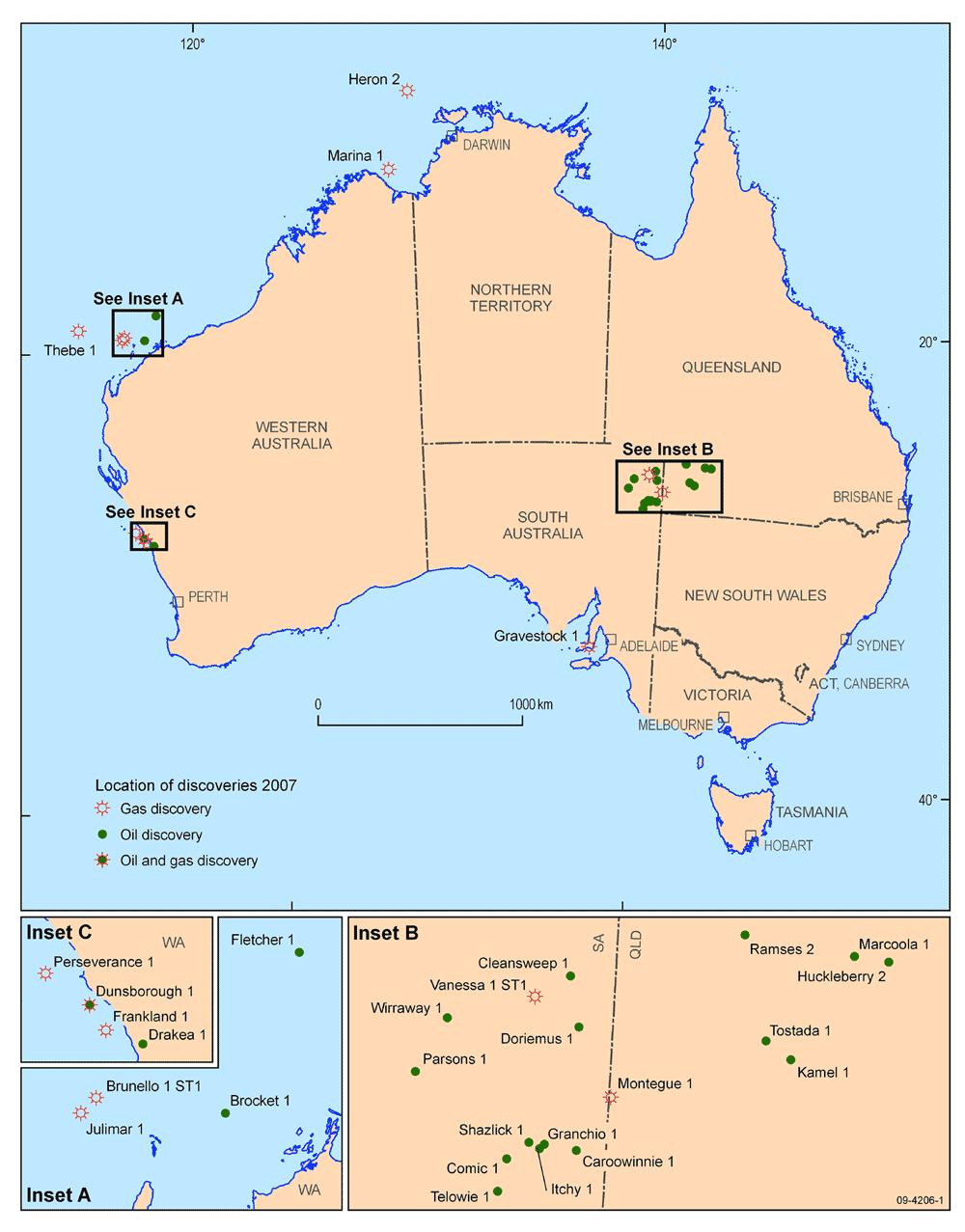 Discoveries Figure 1: Locations of Discoveries of Oil and Gas in and around Australia, 2007.